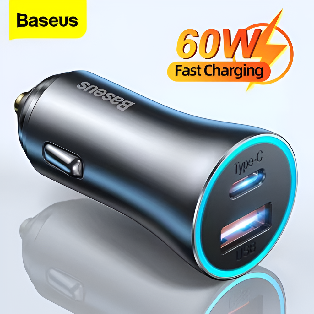 The Baseus fast car charger features 2 USB ports and a Type-C with QC/PD support, allowing compact, simultaneous charging of multiple devices—perfect for daily drives, long trips, and emergencies.